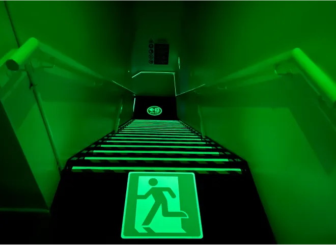 在地铁站台或隧道内应用夜光疏散标志,确保电力中断情况下仍能提供清晰逃生指引